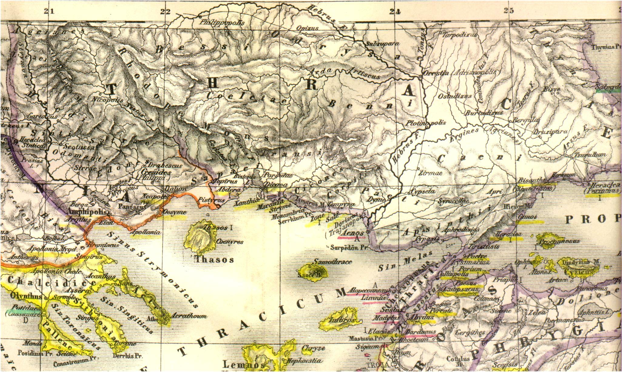 Landkarte Von Griechenland (Thrakien) Im Lateinischen Link-Lexikon